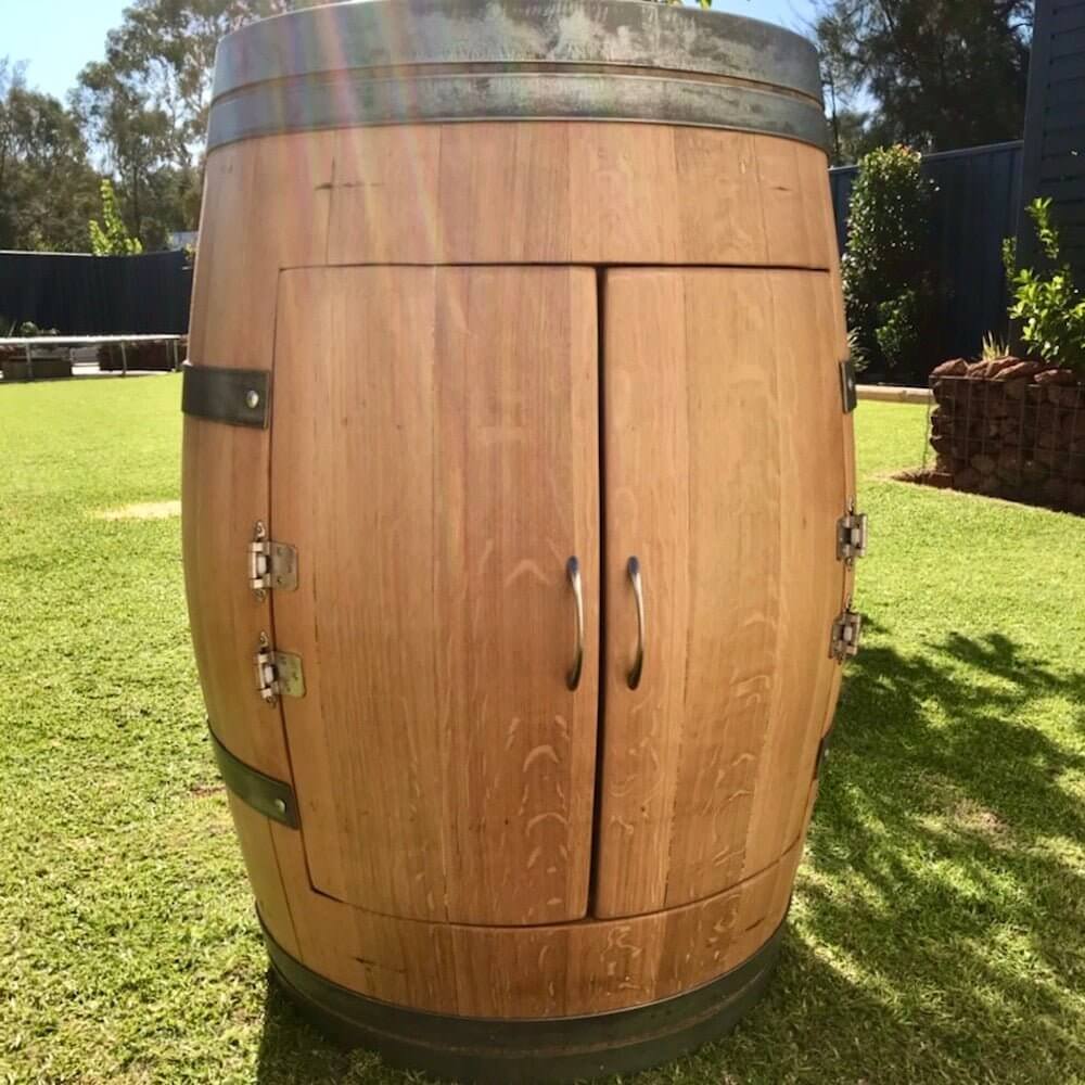 Each one of these original barrels was previously used during production of premium Australian wines. The barrels are then retrofitted by hand to create the timeless wine barrels pictured.